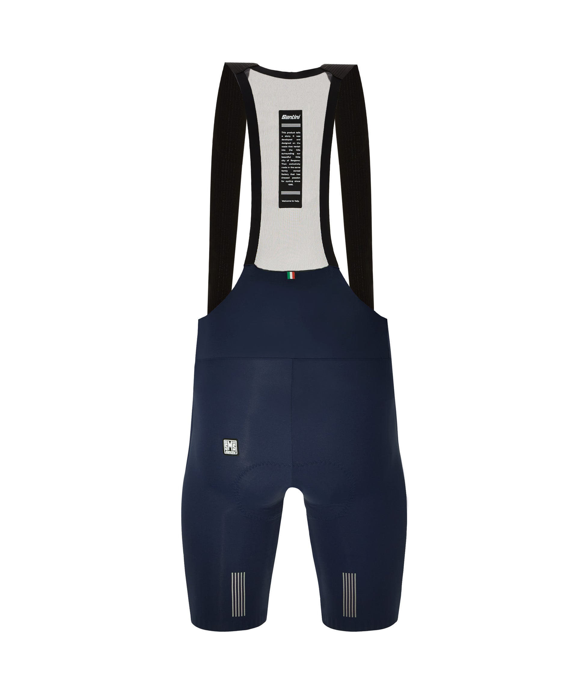 Made of premium fit Italian fabric, incredibly stretch, and highly compressive but with a soft feel on the skin. Made of recycled polyamide and featuring a matte finish for a clean, classy look. Front seamless elastic braces cling to the body without restriction. Extremely light and elastic mesh on the rear for perfect ventilation. Internal anti-slip coloured leg gripper to keep the bib-shorts in place while pedalling.
