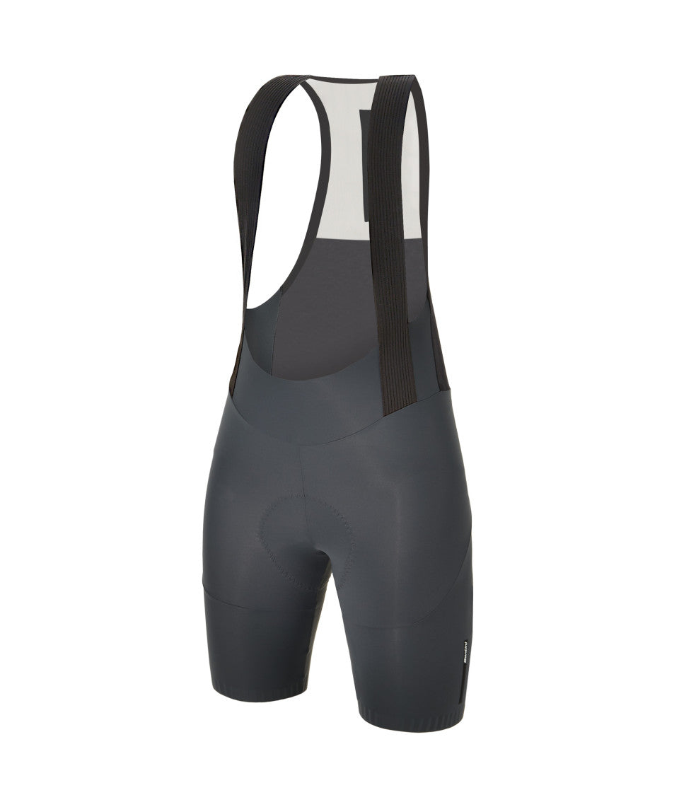 Made of premium fit Italian fabric, incredibly stretch, and highly compressive but with a soft feel on the skin. Made of recycled polyamide and featuring a matte finish for a clean, classy look. Front seamless elastic braces cling to the body without restriction. Extremely light and elastic mesh on the rear for perfect ventilation. Internal anti-slip coloured leg gripper to keep the bib-shorts in place while pedaling.